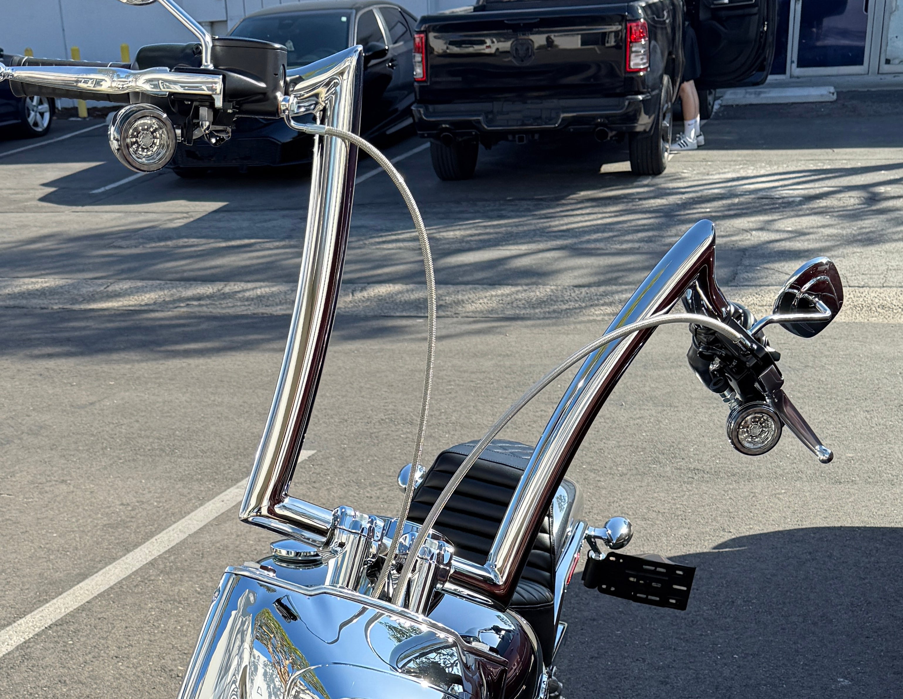 Our Signature 1 3/4” Heavyweight Apes fit the design and style of the touring bikes seamlessly. They look super tough and aggressive but without jumping the shark.
